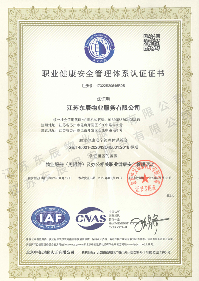 2022-2025年職業(yè)健康安全管理體系認(rèn)證證書